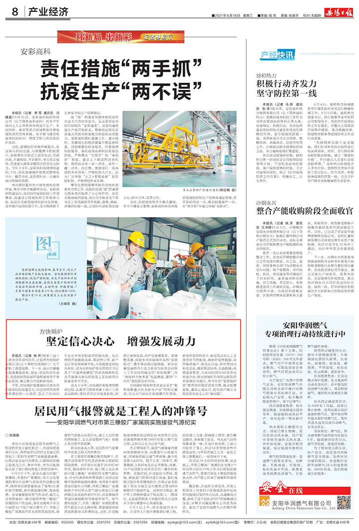進入下半年,方快鍋爐將梳理思路再出發,認真學習貫徹省委十屆十三次會議精神,堅持項目訂單攻關機制,外抓訂單保發展,內嚴創新謀變革。要調整部署,排除水災和疫情帶來的“雙重阻力”,勇于謀劃再出發措施。將企業要發展的內生動力轉變為依靠企業院士工作站持續輸出的“創新能源”,向“省級科學技術獎”發起挑戰,贏得“十四五”規劃的良好開局。