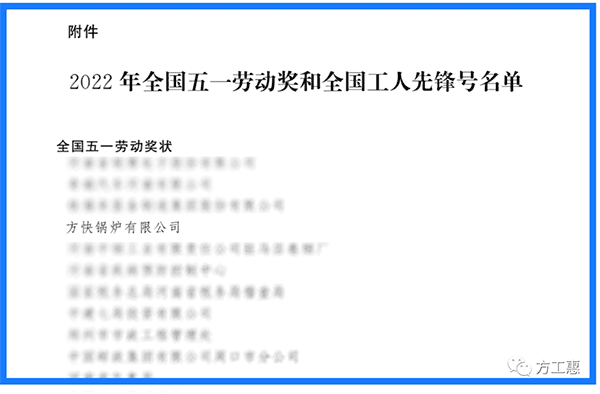 本次會議表彰了200個集體和966名個人以及956個工人先鋒號集體。經過層層選拔,優(yōu)中選優(yōu),方快鍋爐有限公司在2022年的評選過程中脫穎而出,并評為全國“五一勞動獎狀”單位。