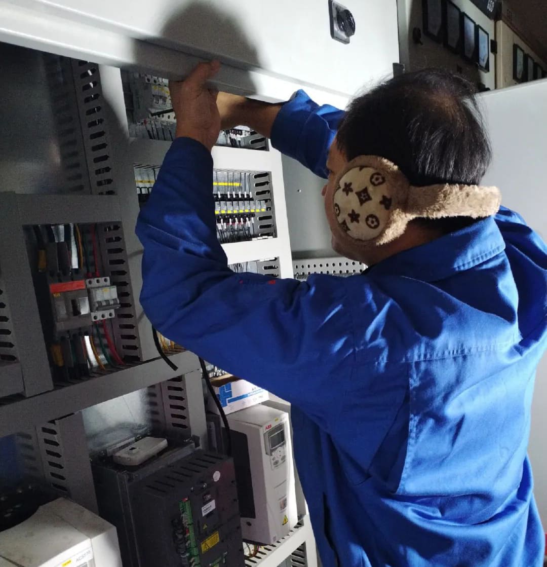 由于天氣寒冷,尹工帶病作業,對安裝公司進行動力柜與風機主電纜接線指導以及爐體各傳感器的放線及指導,測試各伺服電機給定與反饋值,風機正反轉調整,排除各種潛在故障。盡管天氣條件惡劣,但他并沒有絲毫懈怠,在現場及時解決實際問題。目前該項目還在進行中,還需克服低溫困難,持續奮戰,盡最大努力往前推進工作進度。