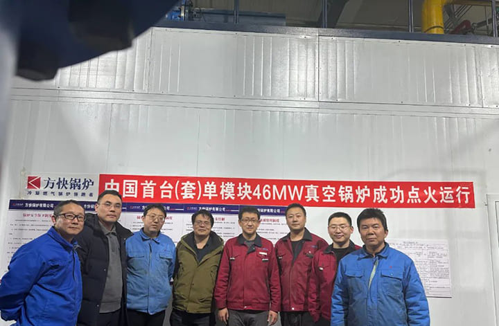 由方快鍋爐有限公司自主研發的國內首臺單模塊46MW真空鍋爐供熱項目一次點火成功,在功率等級、經濟性、排放、技術和可靠性等諸多方面處于國際先進、國內領先水平。