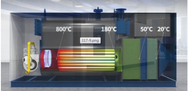 D6采用了冷凝器和深冷器的雙重結合技術,將煙溫降至20℃以下,解決了燃氣鍋爐運行中的白煙問題,完美契合國家“碳達峰、碳中和”戰略目標。