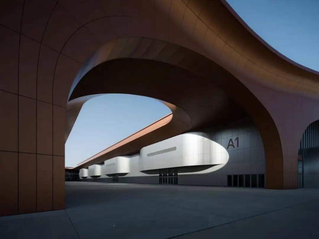 建筑屋頂如液態金屬般流淌,仿佛進入了未來世界。這種突破物理極限的曲線美學,是對“未來城市公共空間”的具象化表達。
