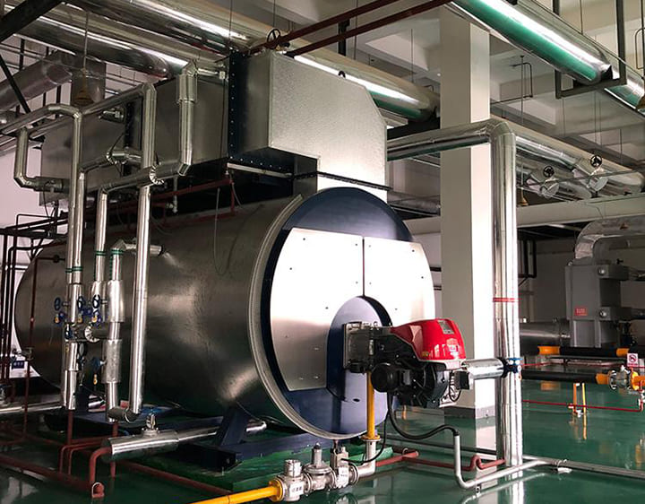 WNS型燃氣蒸汽鍋爐呈臥式結構,帶有冷凝器和節能器等輔機設備,是工業行業普遍青睞的鍋爐設備。WNS型臥式全自動燃油蒸汽鍋爐為臥式快裝內燃三回程火管鍋,采用偏置爐膽濕背式結構,高溫煙氣依次沖刷第二及第三回程煙管,然后由后煙室經煙囪排入大氣。鍋爐裝有活動的前后煙箱蓋,使鍋爐檢修方便。