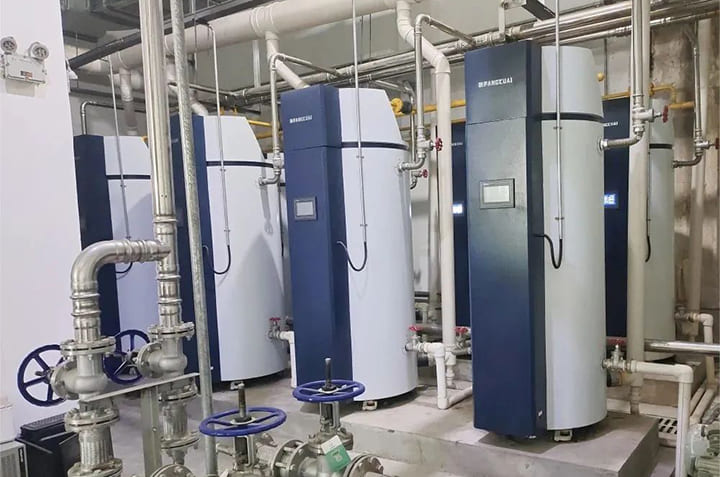 基于建設(shè)和系統(tǒng)投資成本,考慮到該項(xiàng)目建筑分散性布置,用水點(diǎn)分散且需求量大的特點(diǎn),故委托方快鍋爐為其量身定制一站式熱水解決方案。經(jīng)過方快技術(shù)專家論證,最終為該項(xiàng)目選用10臺(tái)模塊化并聯(lián)式容積式燃?xì)鉄崴疇t,為300余間干部住房及泳池提供舒適熱水。